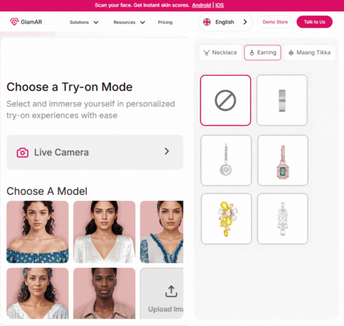 Customers can engage with different earring models available in real-time. Through a smart device camera, user can virtually try on and test the color, and shape of each earrings on their ear in real-time for a virtual assessment before making a purchase