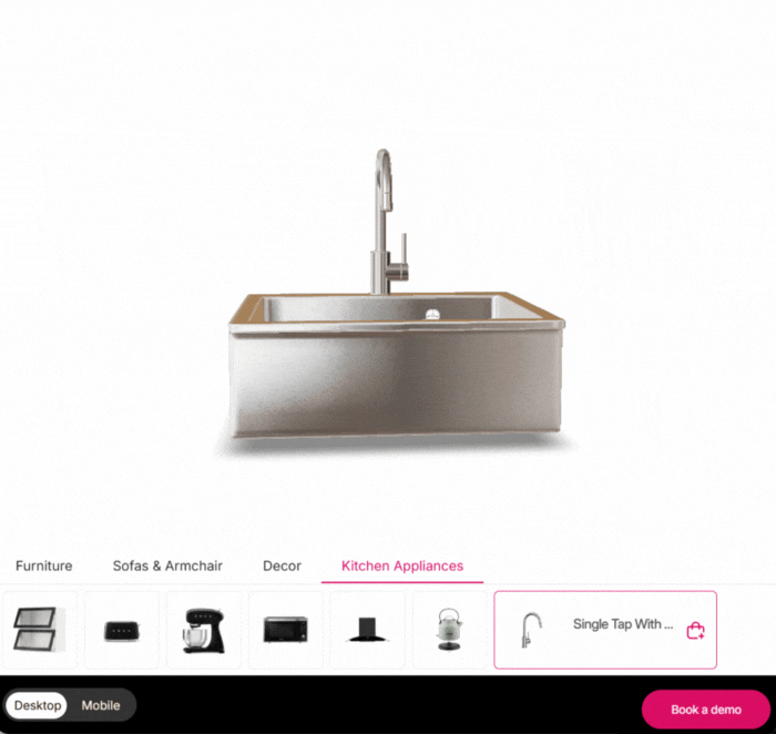 It is an online visualization software that allows users to check the single tap with a sink in 3D and 360° technologies. Besides, the AR allows your customers to overlay and position the product in their bathroom or kitchen in a real-time setting. In essence, the product enables your customers to preview and personalize the product to suit their preferences.